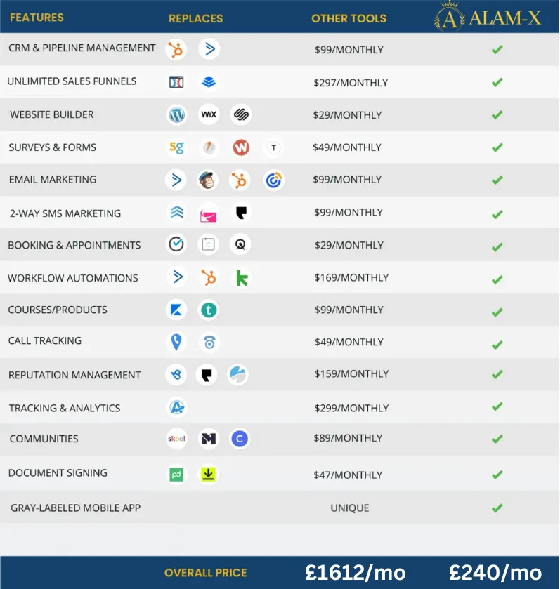 SMS/Email automations & many more options included
